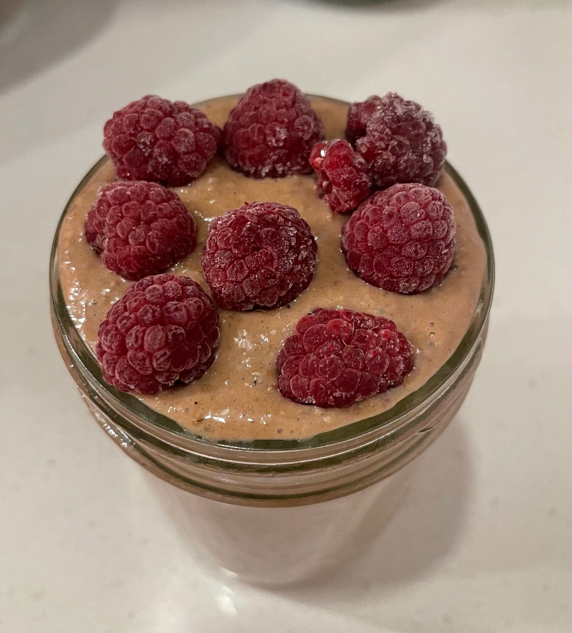 - 1 Banane et petits fruits surgelés au choix ( ex: framboises, bleuets, mûres. etc.)
